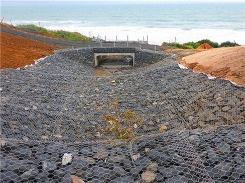 固濱籠(格賓石籠)是由蜂巢形格網(wǎng)片,將特種鋼絲鍍膜后,由專用機(jī)械編織成的雙絞、蜂巢形網(wǎng)片組裝成箱籠,根據(jù)工程設(shè)計(jì)要求裁剪、制作、組裝成箱籠并裝入塊石等填充料后連接成一體的結(jié)構(gòu),是用做堤身、堤基及路基等防護(hù)工程的新型結(jié)構(gòu)。岸結(jié)構(gòu)形式可以分為擋墻、護(hù)坡、護(hù)底、護(hù)腳、水下拋石籠等。習(xí)慣上又將護(hù)坡、護(hù)底工程上常用的較薄的一種箱籠稱格賓網(wǎng)墊(高度一般在0.17—40cm)。擋墻、拋石籠常用的較厚的一種稱為格賓網(wǎng)箱(一般高度在50cm以上)。治理山坡、綠化植被及水土保持常用的則稱為格賓植被掛網(wǎng)。