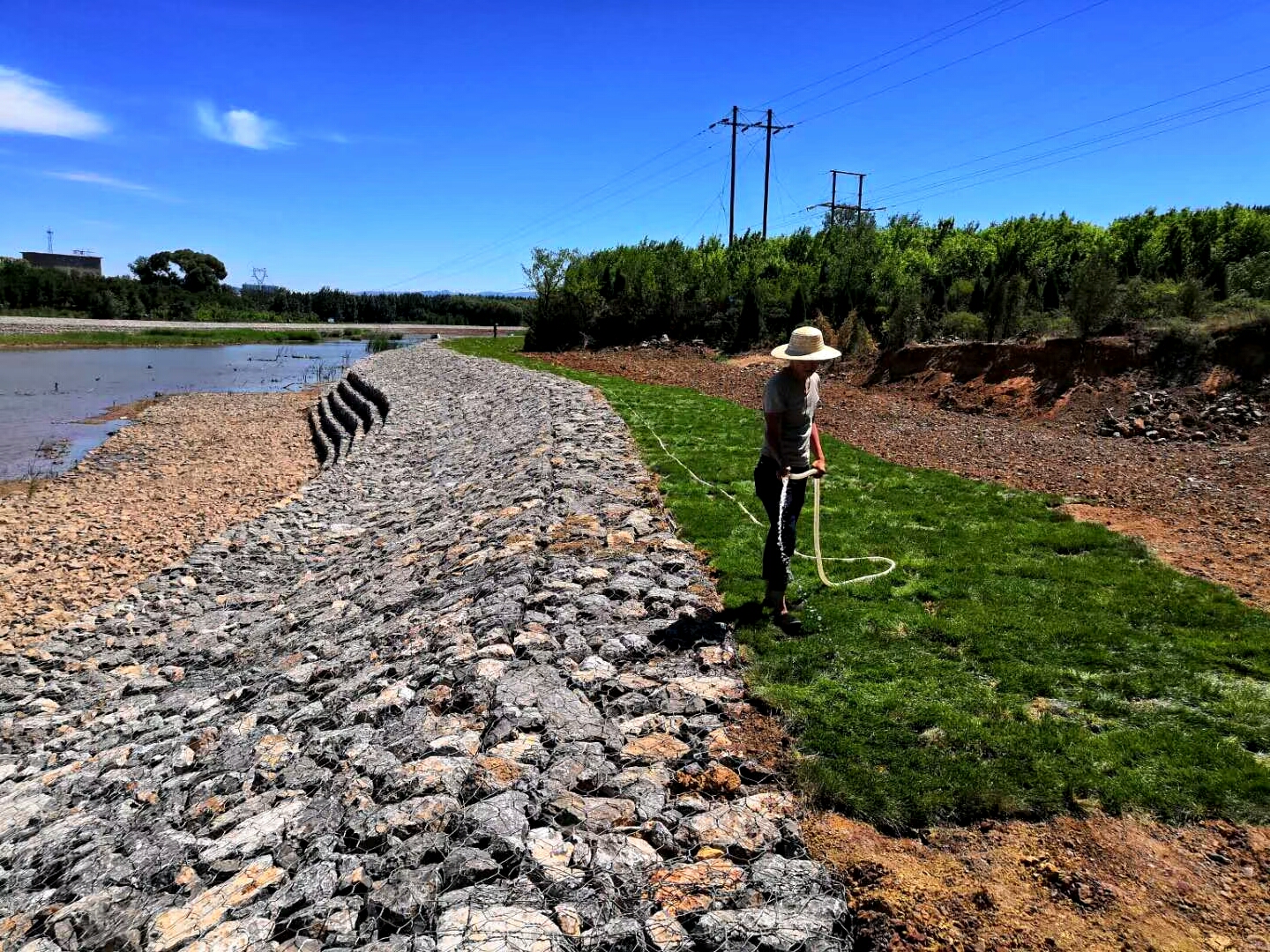生態(tài)石籠網(wǎng)應用工藝是用高強度鍍鋅鋼絲編織成不同規(guī)格的矩形籠子,籠子內(nèi)充填石頭的結(jié)構。這種結(jié)構應用到岸坡防護后,在人為和自然因素的雙重作用下,石塊之間的縫隙不斷被泥土充填。植物種子逐漸在石塊之間的泥土中生根發(fā)芽,茁壯生長,根系牢牢固定石塊和泥土。如此即可以對邊坡實現(xiàn)防護和綠化的目的,改善生態(tài)、保持水土的效果也十分顯著。生態(tài)石籠網(wǎng)箱工藝具有四個方面的優(yōu)勢:一是施工簡便,生態(tài)石籠網(wǎng)箱工藝只需將石頭裝入籠子中封口即可,不需要特殊技術,也不需要水電。二是費用低廉,生態(tài)石籠網(wǎng)箱每平方米造價只需15元。 三是景觀和防護效果好。生態(tài)石籠網(wǎng)箱工藝采用的工程措施和植物措施相結(jié)合的方式,能有效防止水土流失,景觀見效快,景觀效果更自然、更豐富。 四是使用壽命長,生態(tài)石籠網(wǎng)箱工藝壽命長達幾十年,且一般不用維修。